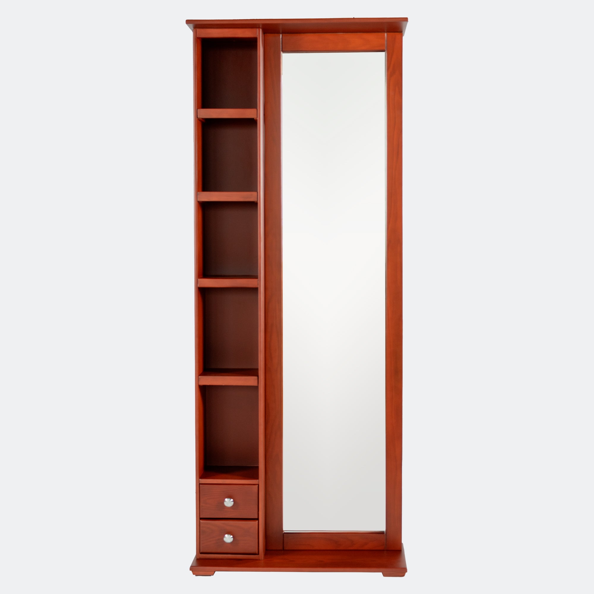 Cuenta con un amplio espejo que te permite arreglarte con comodidad, mientras que sus múltiples cajones y gavetas ofrecen espacio suficiente para organizar tus accesorios, cosméticos y objetos personales de forma ordenada.